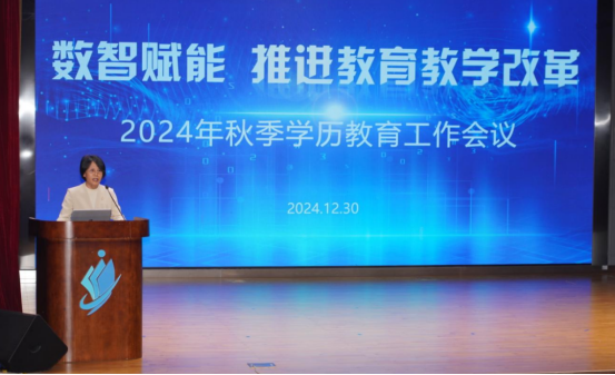 2024年12月30日,午夜在线小视频召开“数智赋能 推进教育教学改革—2024年秋季学期学历教育工作会议”,深入学习贯彻党的二十届三中全会精神,深入学习贯彻习近平总书记在全国教育大会上的重要讲话精神和全国教育大会精神,落实立德树人根本任务,立足教育强国建设目标,贯彻落实国家开放大学教学工作部署,数智赋能推进教育教学改革,全面提升人才培养质量,实现午夜激情网站高质量发展。党委书记丘卫青、校长熊军、党委副书记陈雪曼、副校长孙彬出席会议。会议由陈雪曼主持。